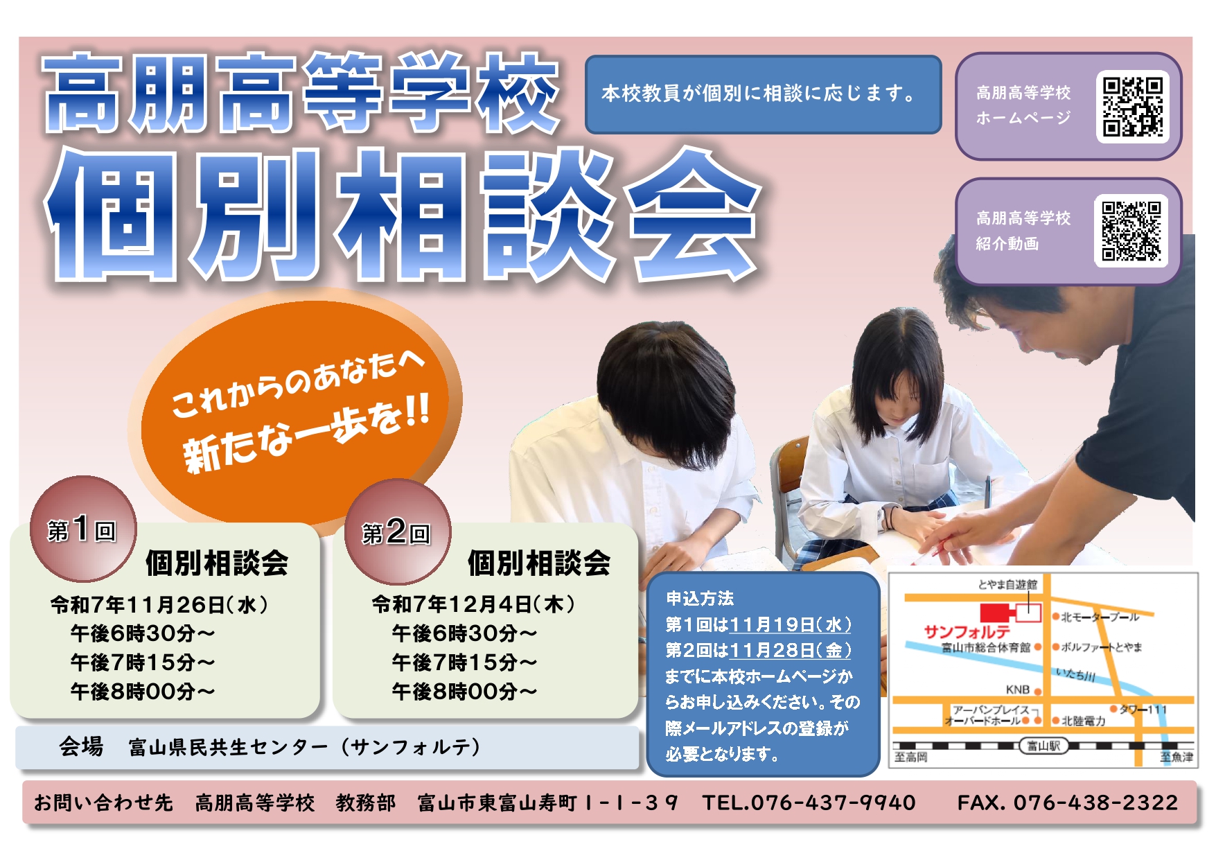 高朋高等学校 〒931-8452 富山県富山市東富山寿町1-1-39 TEL:076-437-9940 FAX:076-438-2322